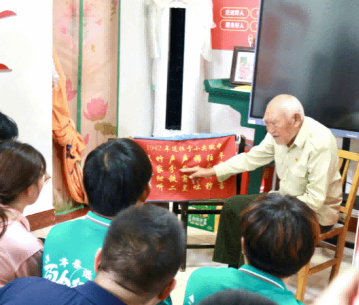 7月30日,青春微梦夏令行暑期社会实践团走访慰问“中国好人”“全国模范退役军人”“全国退休干部先进个人”“江苏省道德模范”“81年党龄”的百岁老人周仁甫同志,为他送上建军节祝福。周仁甫对志愿者们的到来表示感谢,并结合自己的亲身经历,以通俗易懂的方式为志愿者们上了一堂生动的党史学习教育课。他寄语青年志愿者们,要不忘初心、牢记使命,珍惜来之不易的和平生活,鼓励大家努力学习,发愤图强,为祖国的繁荣富强贡献自己的力量。志愿者们深受感染,纷纷表示将从红色故事中汲取精神力量,不忘初心,砥砺奋进,努力传承革命军人身上的爱国主义精神和优良传统。