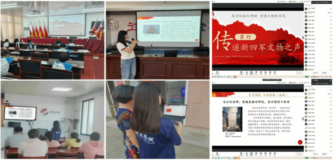 实践团成员秉承“用好革命文物,讲好革命故事,传承革命精神”的宗旨,持续以新四军革命文物活化为主线,将实践中收集的资料进行整合转化。8月期间,成员们化身革命文物解说者,面向盐城、常州、南京等地的学校、社区和村部线上线下开展专题宣传和宣讲活动。同学们以一件件真实的新四军革命文物为切入点,通过文字、图片、视频等形式,向群众与青年学生讲述文物史实,传递精神内涵,让新四军革命文化真正沁润心灵。同时,实践团依托微信公众号平台,每日围绕一个典型革命文物发布主题推文,以文物简介、文物故事、青年心声三个方面充分呈现文物昔日风采,搭建革命文物与青年对话的桥梁,以此激发弘扬铁军精神、赓续红色血脉的爱国之情。