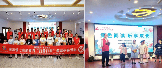 实践小队来到盐城市南洋镇新时代文明实践所,感受当地浓厚的乡村氛围和当地文化气息,并参与了“绿色阅读,乐享成长”读书会活动,在七彩的夏日,助力强国复兴,同心筑梦。紧接着,实践所工作人员给同学们介绍了盐城红色文化在当地的历史背景、文化传承以及对地方经济和社会发展的影响。