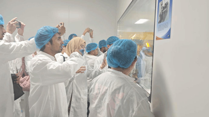 午餐后,留学生们来到大丰区内多家高新技术企业参观。在江苏菌钥生命科技发展有限公司,负责人向留学生们介绍了企业在中医药发酵、药品研发等领域的最新进展。留学生们对琳琅满目的中草药十分好奇,纷纷拍照研究,还品尝了各类中药发酵饮品。在江苏正大丰海制药有限公司,留学生们走进生产车间实地感受自动化生产的高效,不仅认真细致观看学习,还给远在大洋彼岸的家人朋友们打起了视频电话,一同感受现代化中国力量。来自孟加拉的DANISH说:“中国科学技术太先进了,我要好好学习中文,以后留在中国发展。”