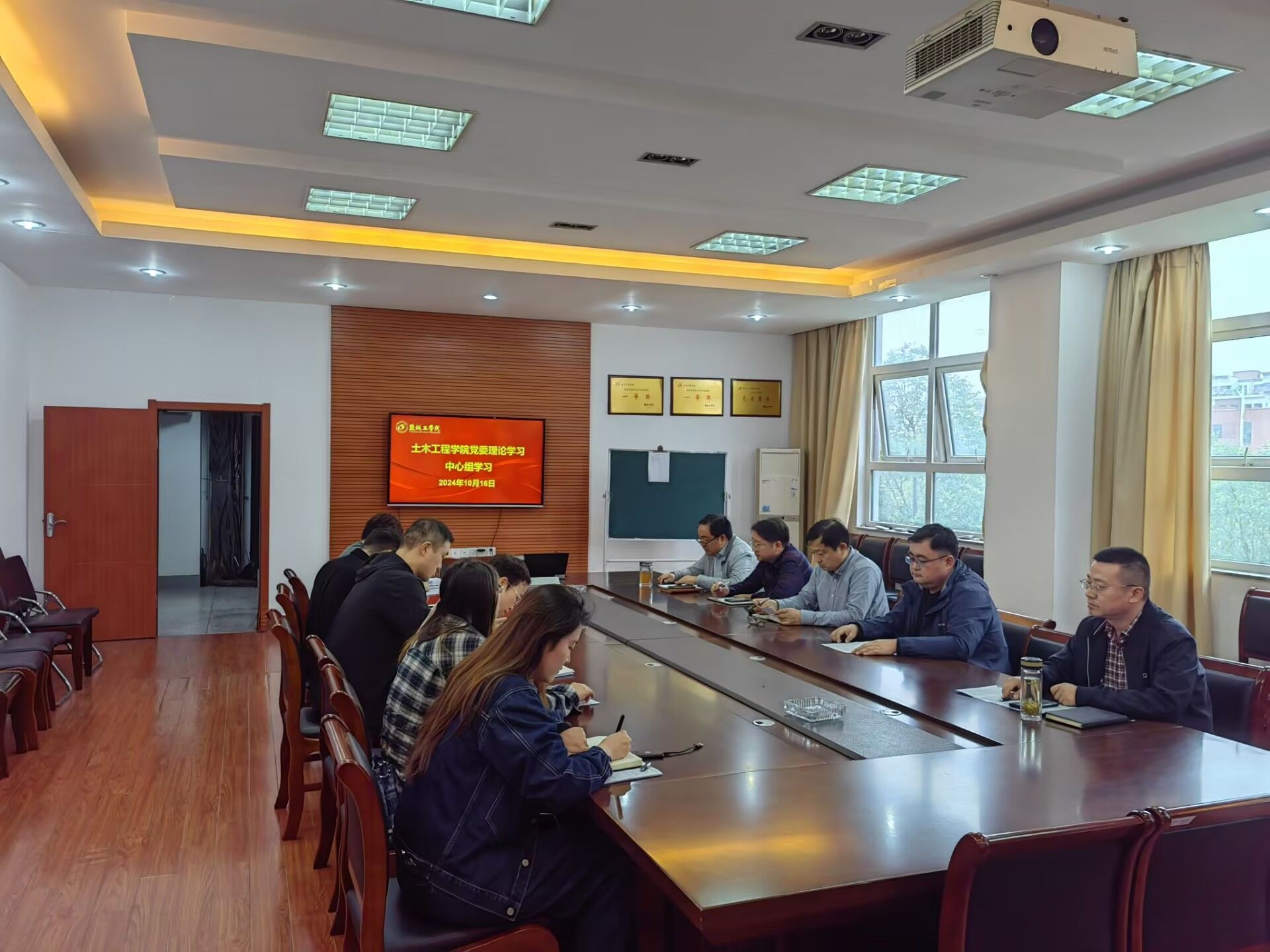 10月16日下午,土木工程学院党委理论学习中心组在土木馆A206会议室召开集体学习会,认真学习习近平总书记在全国教育大会上的重要讲话精神,并就学院如何进一步学习宣传贯彻二十届三中全会精神开展交流讨论。党委书记谷伟主持会议,理论学习中心组全体成员参加。