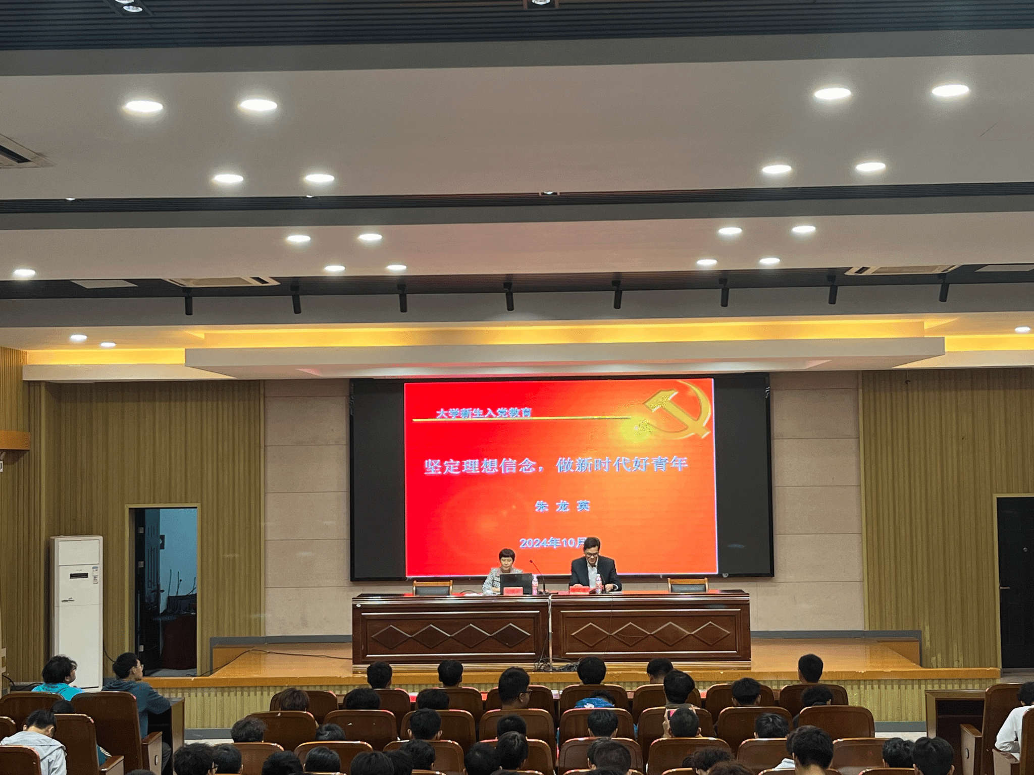 为引导新生深入了解党的历史、宗旨和使命,激发爱国热情,筑牢培养更多优秀青年党员的坚实基础,10月11日晚,汽车工程学院联合“云泉”一站式社区在机械馆报告厅开展了2024级新生入党启蒙教育,本次讲座由党总支副书记丁德惠主持,汽车工程学院原党总支书记朱龙英主讲,新生辅导员及全体2024级新生参加本次讲座。
