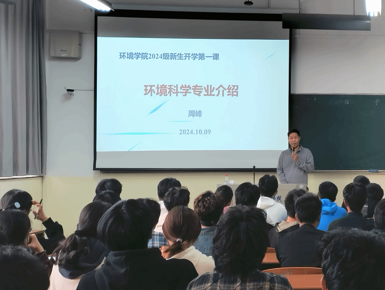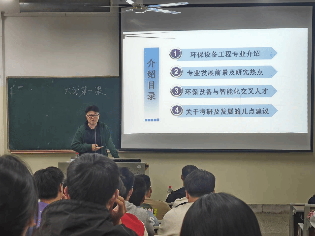 为帮助2024级新生更好地了解专业前景,提升专业认知,规划发展方向,10月9日下午,环境学院联合“一站式”学生社区,在北校区知行楼102、103、104教室分别开展“大学第一课”系主任见面会活动。环境科学系主任周峰、环保设备系主任远野、环境工程系副主任郭雪洁,专任教师王忠军、张麓岩,学工办主任沈丹、辅导员王翔、2024级新生参加。会议由党总支副书记王丽坤主持。