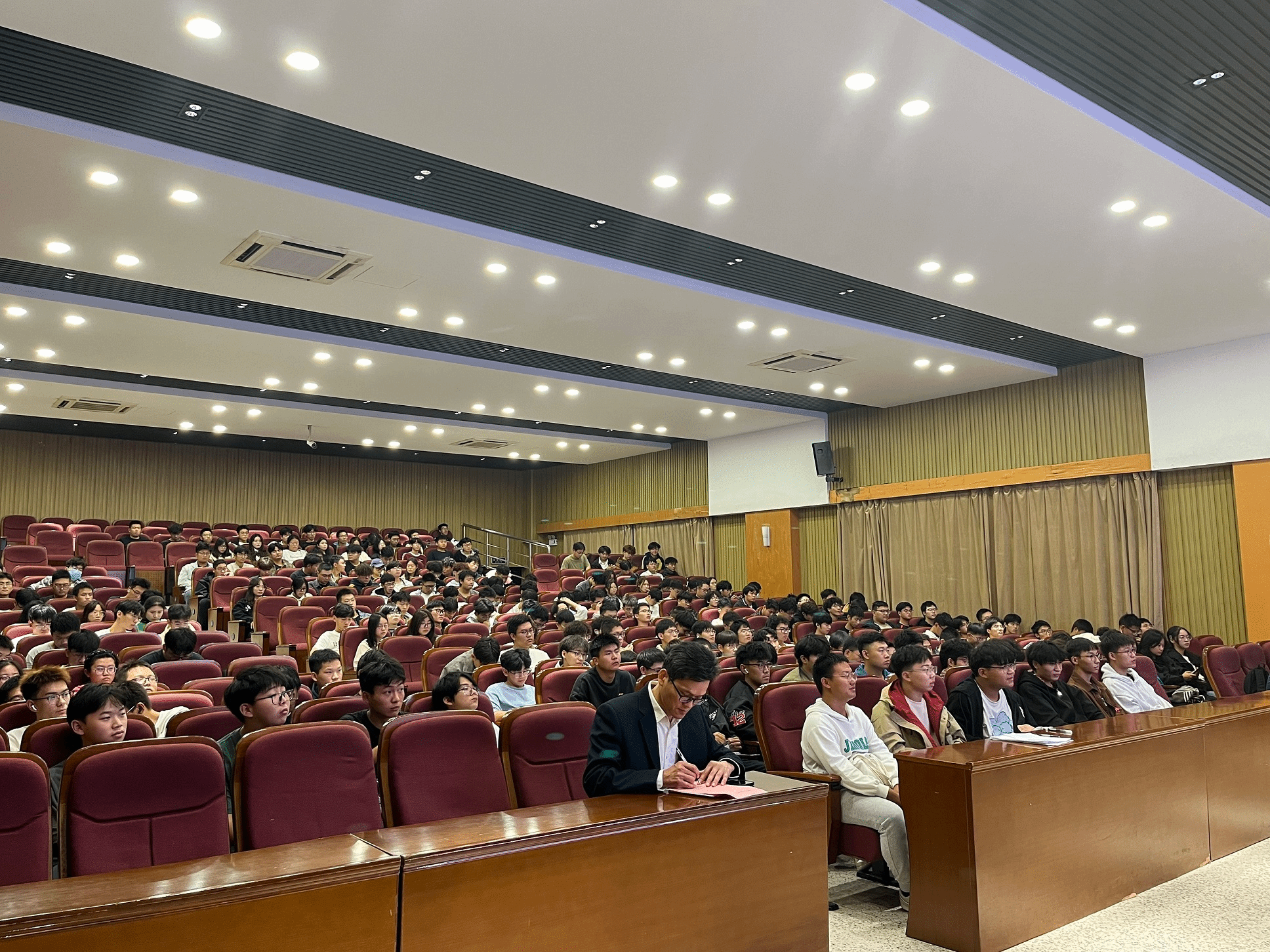 各专业系主任和老师分别就各自专业的发展前景、专业特色、课程设置以及就业前景等方面进行了详细介绍。他们通过生动的案例、丰富的数据和深入浅出的讲解,让新生们对所学专业有了更加全面、深入的了解。在讲座的互动环节,新生们积极提问,各位老师对新生们关心的学习方法、职业规划等问题进行了答疑解惑,为他们提供了宝贵的建议和指导。讲座最后,各位老师鼓励新生要珍惜大学时光,努力学习,不断提升自己的专业素养和综合能力。树立远大理想,坚定信念,勇于担当,为实现个人价值和社会贡献而不懈努力。