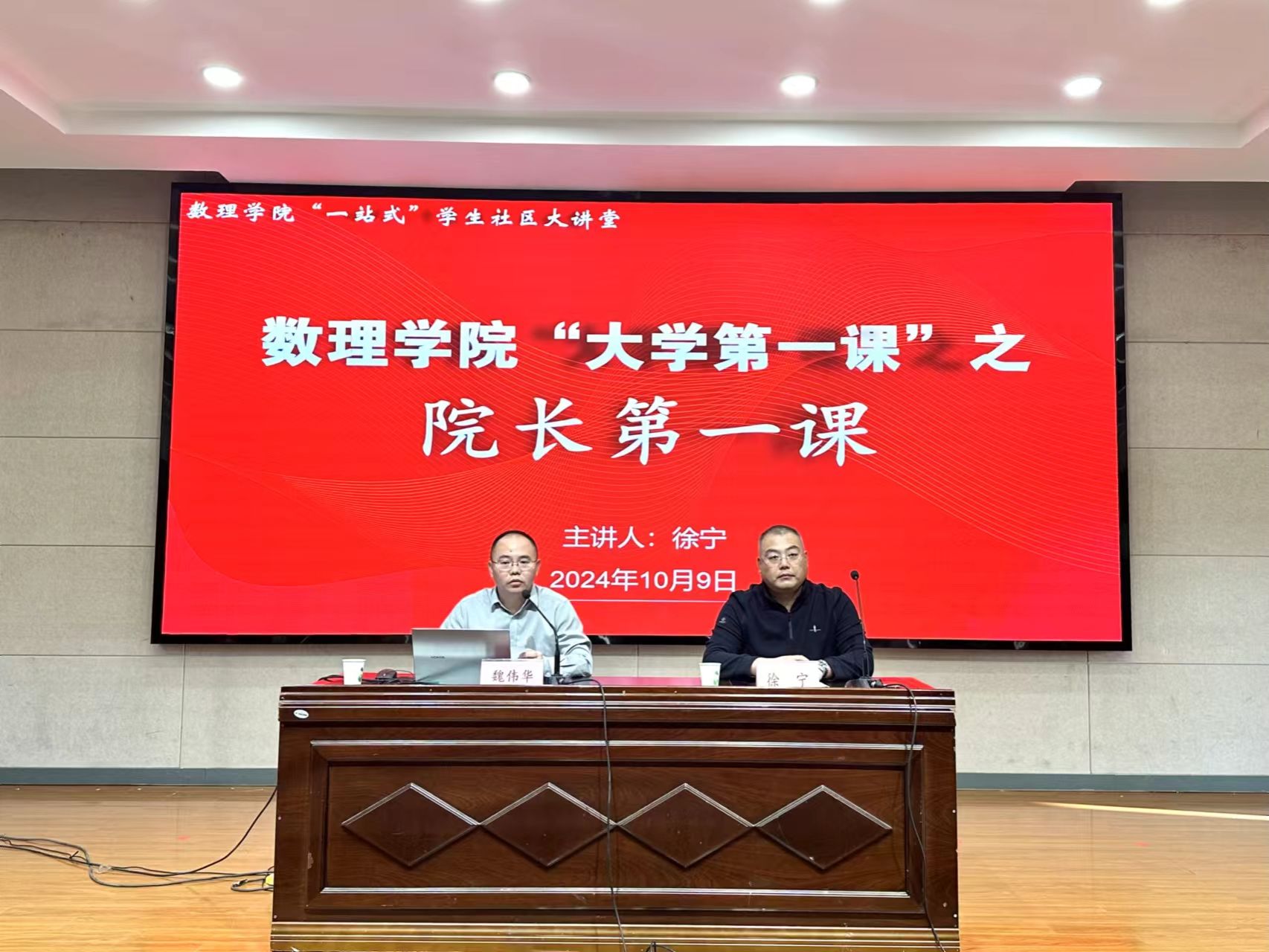 10月9日下午,数理学院在机械馆报告厅开展“大学第一课” 之院长第一课暨专业教育,院长徐宁以《不负青春,“理”所当然》为题为2024级全体新生讲授“院长第一课”。党总支副书记许众威、副院长田灿荣、各专业系主任、新生辅导员及2024级全体新生参加。活动由学院党总支书记魏伟华主持。