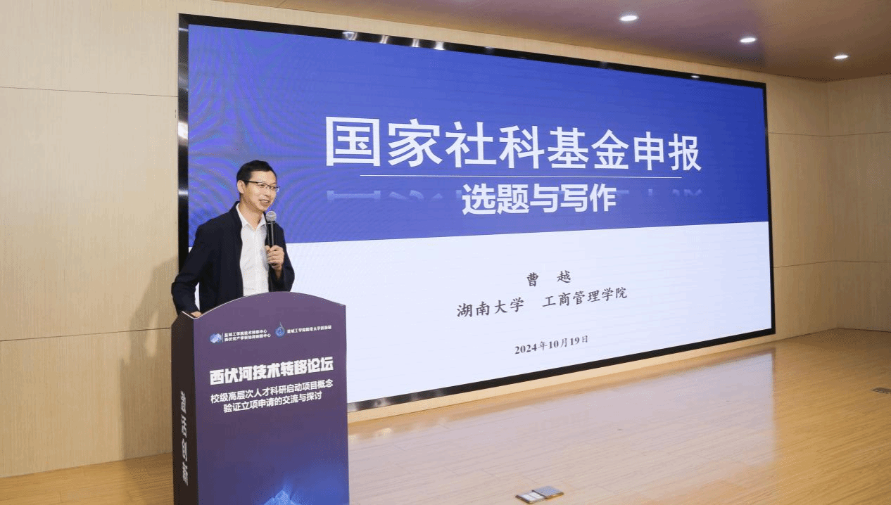 曹越报告的主题是《国家社科基金申报:选题与写作》。在报告中,曹越主要从国家社科基金的选题和国家社科基金的写作两个维度展开,从选题有哪三解、正常选题有哪些不足、如茫茫题海如何找寻、征集选题有何要求、选题与指南的关系、如何避免扎堆撞车、选题来源、问题如何升为选题、选题如何聚焦等方面详细展开,并以2024年的国家社科基金申报书为例详细分享了国家社科基金写作的心得体会。