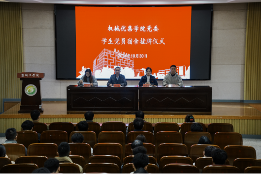 为进一步深化“一站式”学生社区建设,加强学生党员队伍管理,推动学生党员亮身份、树旗帜、当表率,10月30日下午,机械优集学院在希望大道校区机械馆报告厅开展学生党员宿舍挂牌活动。机械优集学院党委副书记闫小民,学生党支部书记及全体学生党员参加。