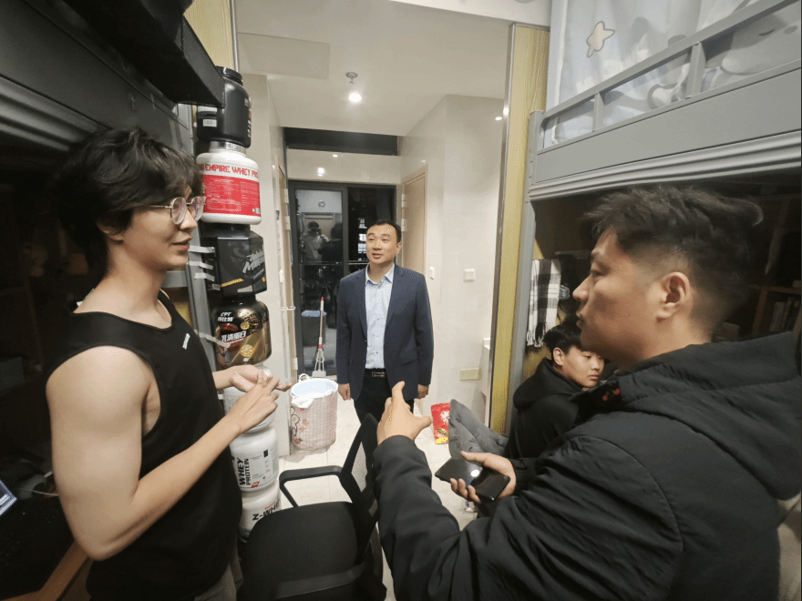 走访过程中,张军、刘荣与同学们亲切交谈,询问他们的学习和生活情况,对发现的安全隐患、卫生等问题提出了整改意见,提醒学生要严格遵守宿舍管理规定,注意宿舍用电安全,维护宿舍卫生,共同营造一个安全、舒适的学习生活环境。