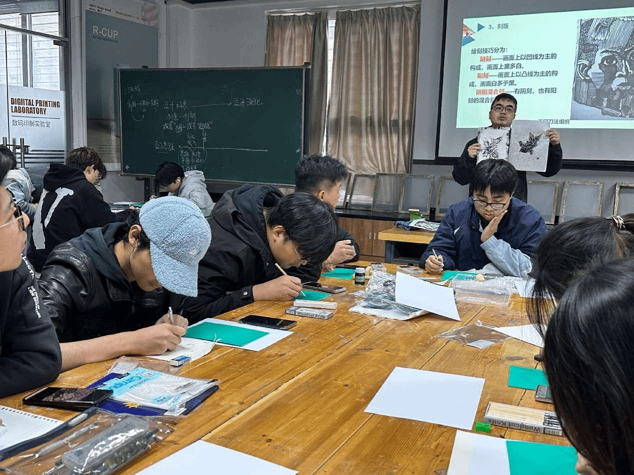 活动现场,设计艺术学院王辉老师为大家详细介绍了木刻艺术的起源、发展历程以及其在不同文化背景下的特色表现。从古老的民间木雕到现代的木刻版画,木刻艺术历经岁月洗礼,不断演变发展,始终散发着独特的魅力。