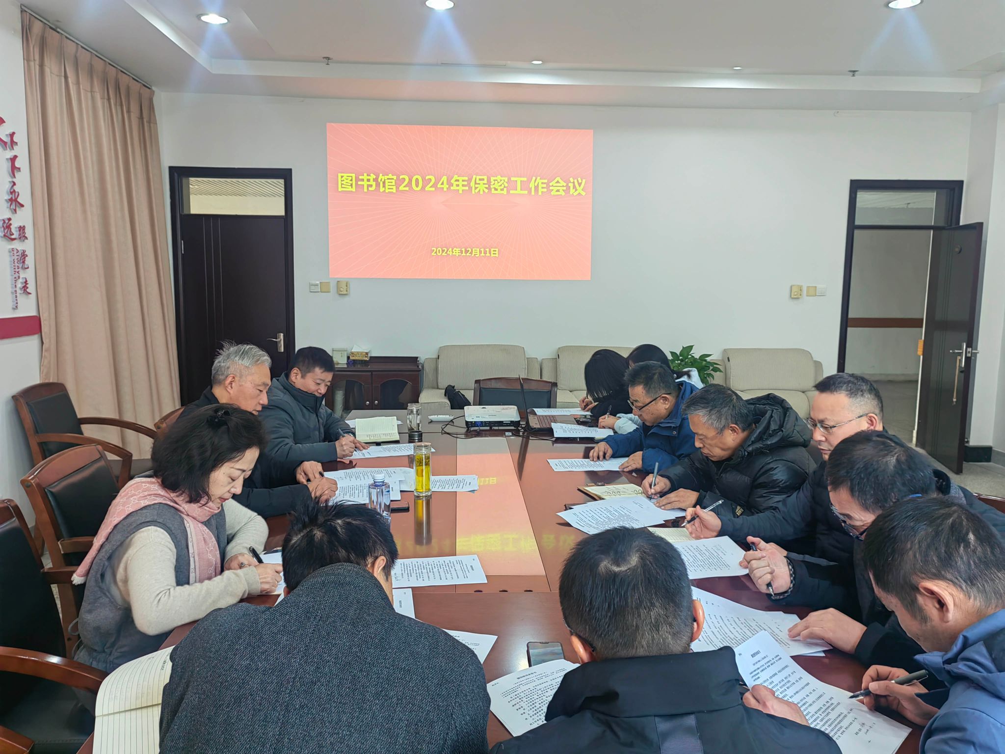 12月11日下午,在南校区图书馆D805会议室,图书馆组织召开2024年保密工作会议,党总支书记花爱军主持,全体部室主任参加。
