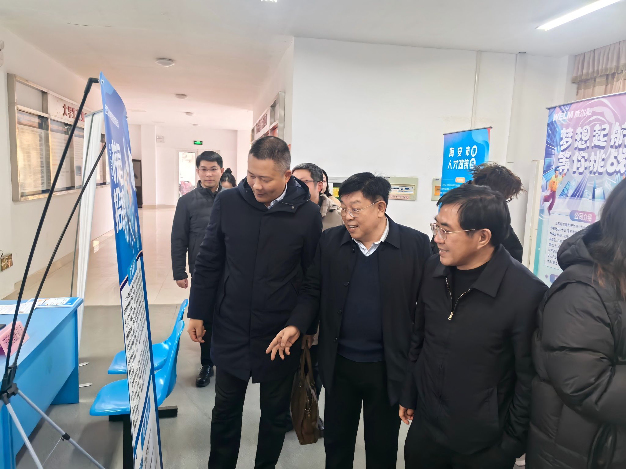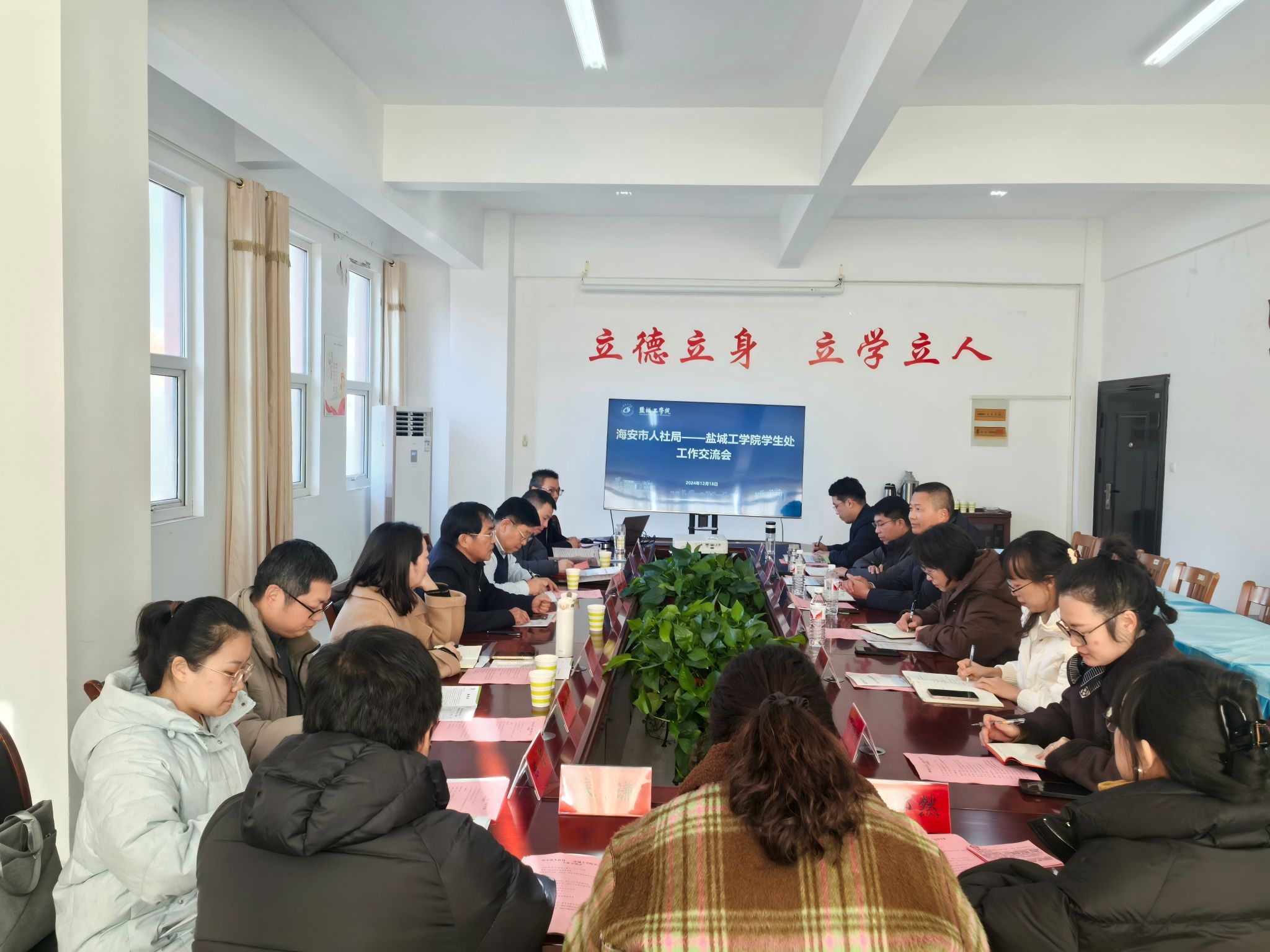 12月19日下午,海安市人大四级调研员沈宏华,海安市人社局一级主任科员袁海秋,海安市人才服务中心主任唐伶俐,海安市住房和城乡建设局、海安市科学技术局等部门有关同志一行7人到我校学生处调研并举办校园招聘活动。党委学工部、学生处、招生与就业创业指导处处长杨汉华,副处长马晓英、阳韬及学生处相关科室同志参加。