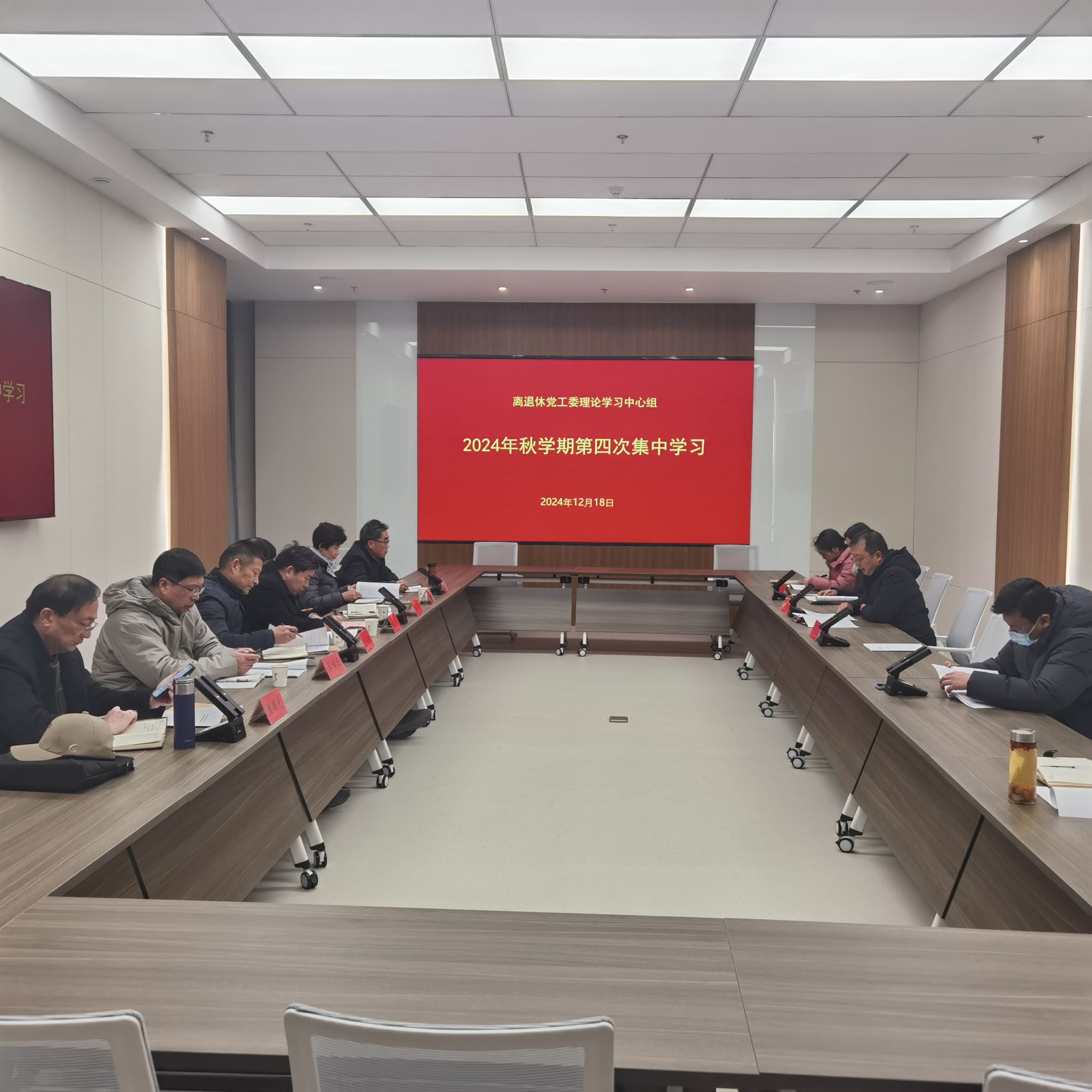 12月18日下午,离退休党工委2024秋学期理论学习中心组第四次集中学习在南校区产教融合大楼一楼会议室举行。离退休党工委中心组成员以及离退休工作处全体在职党员参加学习,会议由离退休党工委书记谷文华主持。