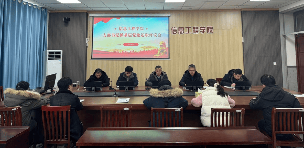 为进一步夯实学院党支部标准化建设,提高党支部书记履职能力,1月10日下午,信息工程学院在希望大道校区怀德楼B410会议室召开2024年党支部书记抓基层党建述职评议会。会议由学院党委书记杨军主持,党委委员、全体党支部书记参会。