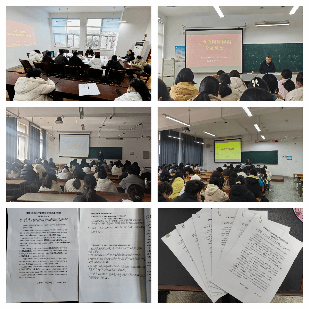 学院召开全体辅导员反诈工作部署会,系统规划教育方案,明确活动目标,明晰活动内容。全体辅导员深入责任班级召开"沉浸式"主题班会,结合校内真实案例剖析刷单返利、虚假交易等高发诈骗类型,引导学生强化防范意识。学院创新设计《反诈承诺书》,通过填空题测试诈骗识别要点、开放题反思个人防诈盲区,全院学生签约覆盖率达100%。