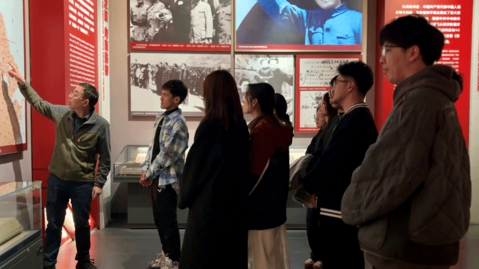 团员们在团旗下庄严宣誓,坚定“请党放心,强国有我”的青春信念。纪念馆内,学院师生们通过参观抗战文物、聆听战史讲解、参与情景互动等方式,沉浸式学习新四军在盐阜大地的英勇斗争史。高留才结合新四军北上路线图,生动讲解新四军在战略转移中展现的顽强意志和卓越智慧,引导同学们深刻领悟“铁军精神”的时代内涵。