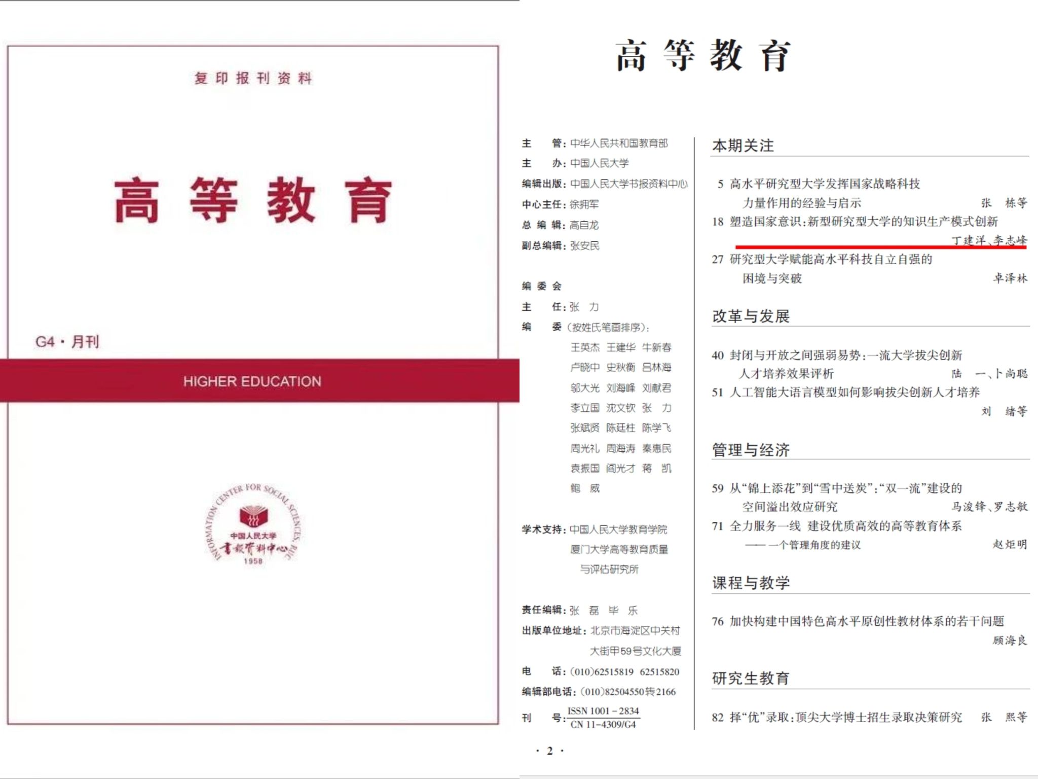 近日,我校经济管理学院丁建洋教授等撰写的论文《塑造国家意识:新型研究型大学的知识生产模式创新》(原刊发于《大学教育科学》2024年第5期),被中国人民大学书报资料中心《复印报刊资料·高等教育》2025年第2期全文转载。论文同时被该中心《教育学文摘》2025年第1期转载。《教育学文摘》为季刊,以一级学科为单位,对人大复印报刊资料系列刊物转载的论文进行再次精选而成,是我国人文社科领域的权威刊物之一,是评价人文社科研究成果水平的重要参考依据。