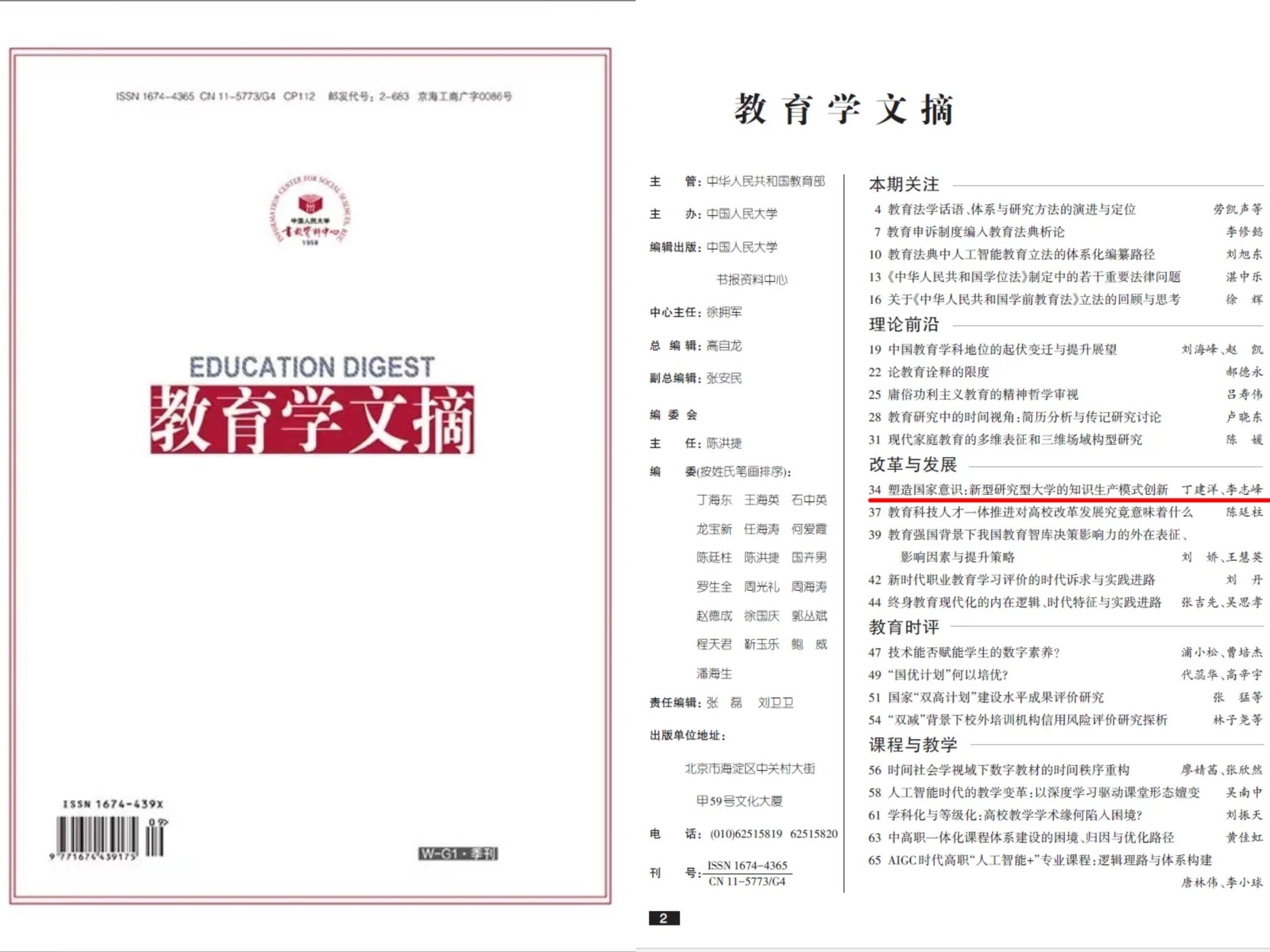 未来,学校将继续依托多学科交叉优势,搭建高水平学术平台,支持教师产出更多服务国家战略、引领学科发展的标志性成果,为推动教育强国建设贡献智慧与力量。