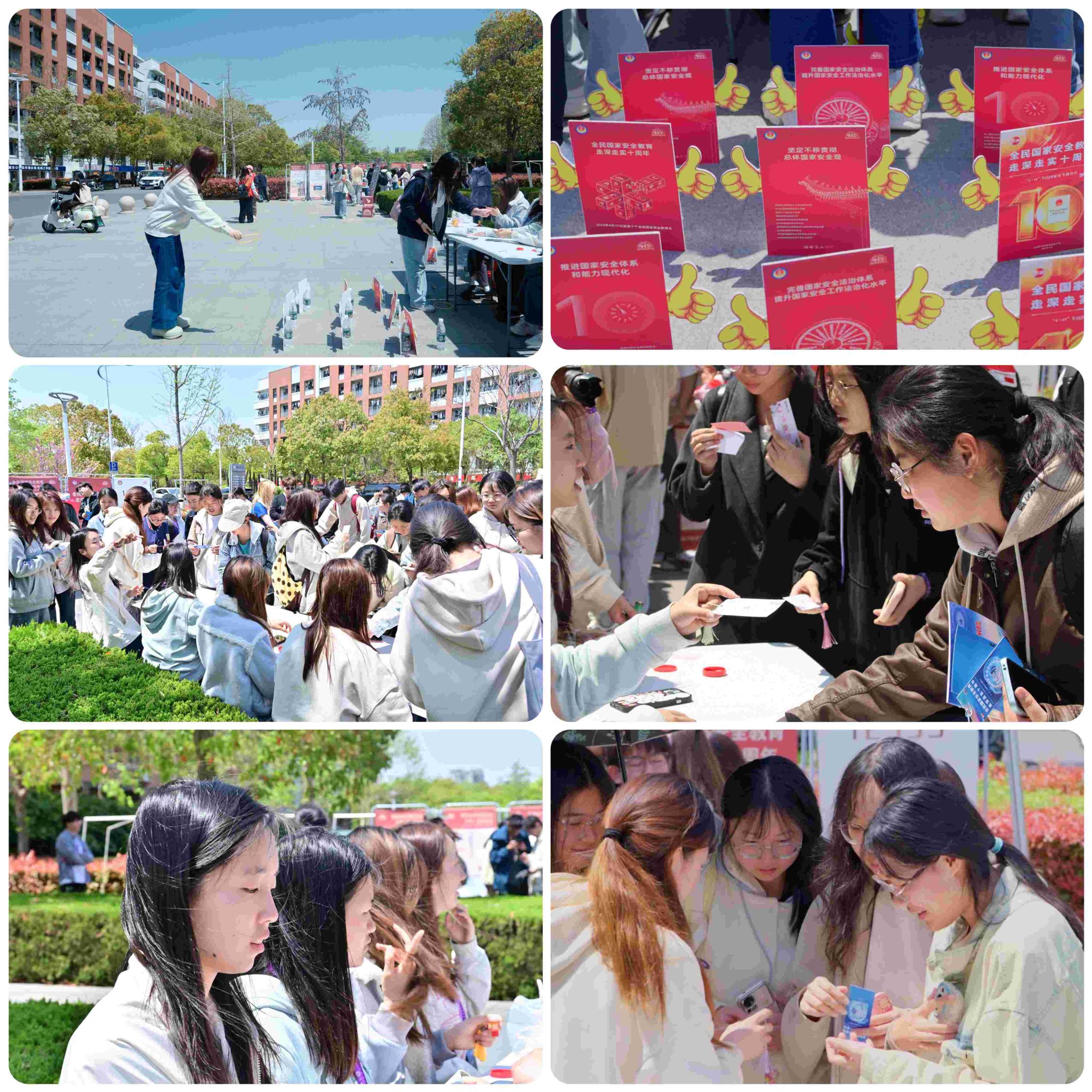 十年守护初心如磐,共筑国安铜墙铁壁。4月15日,在第十个全民国家安全教育日到来之际,学校网络思政中心以“国家安全·想与你共同守护”为主题,在希望大道校区举办趣味活动,通过沉浸式体验、互动式学习,引导师生树牢总体国家安全观,感悟新时代国家安全成就,凝聚维护国家安全的青春力量。