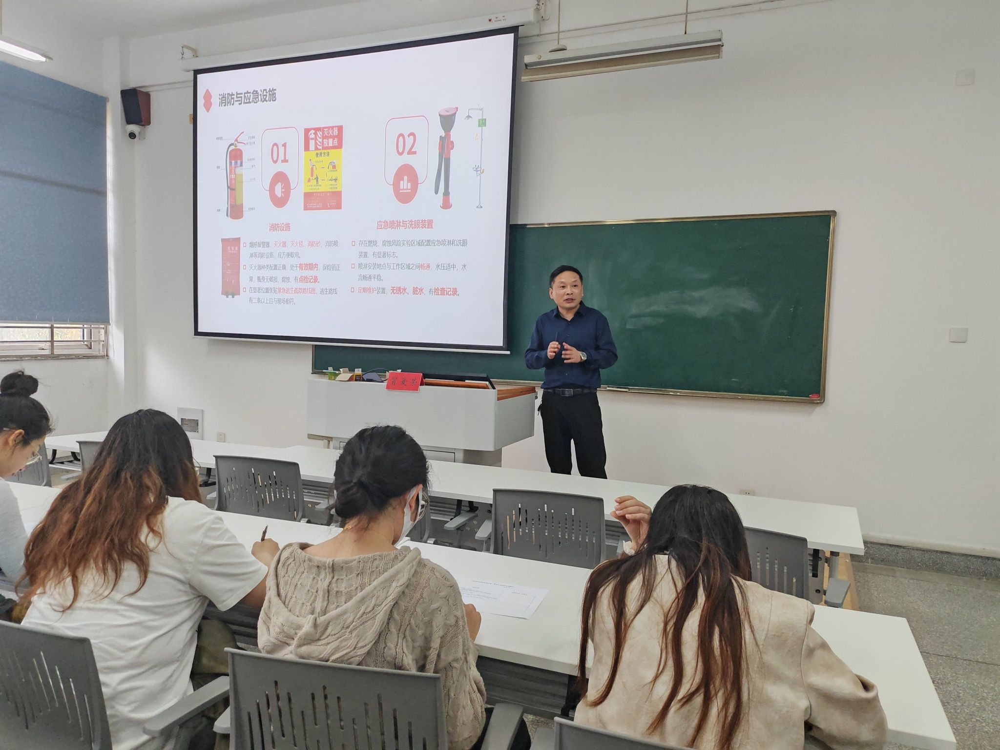 为强化研究生实验室安全意识,提升实验室隐患排查能力,4月18日下午,党委研工部在南校区仁和楼A103教室举办 2025 年研究生实验室安全教育培训会,邀请化学化工学院实验中心主任冒爱荣以“实验室隐患排查能力提升”为主题作专题报告。来自各学院的实验室安全排查志愿服务队骨干成员等40余人参会。会议由党委研工部副部长姜华主持。