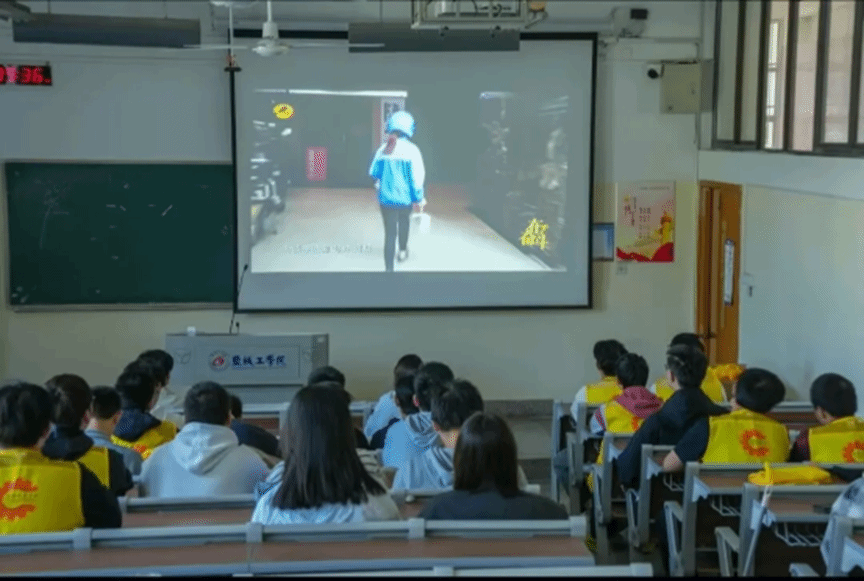 清扫活动结束后,团员们来到教室,共同观看了励志短片《在奋斗》。短片中,一群青年人在各自的岗位上努力拼搏,面对困难毫不退缩,用汗水和坚持书写着奋斗的青春故事。观看过程中,团员们被短片中的人物深深打动,不时发出赞叹声。影片结束后,大家积极分享自己的感悟,纷纷表示要以短片中的奋斗者为榜样,珍惜大学时光,努力学习专业知识,提升自身能力,为未来的职业生涯打下坚实基础。