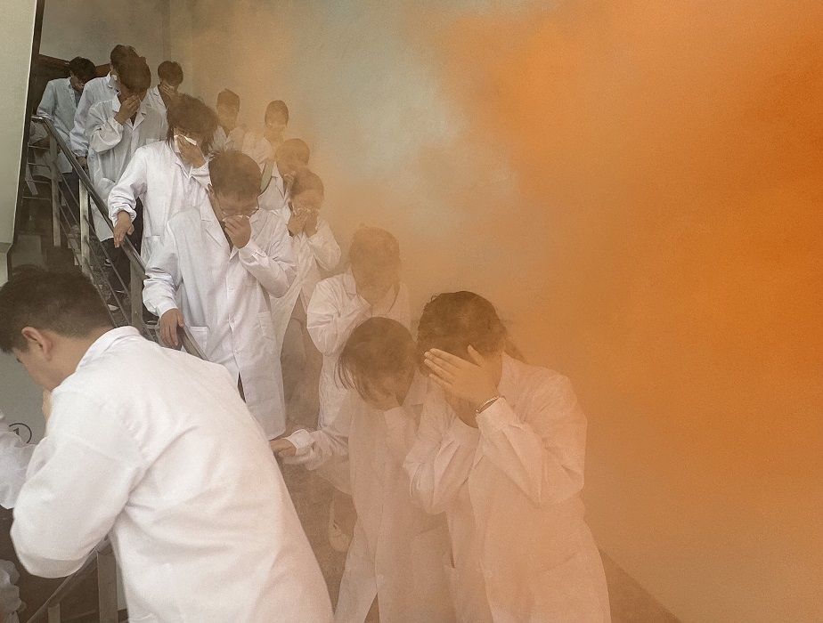 本次演练分为危险化学品泄漏事故应急演练、应急疏散与灭火应急演练两个阶段。第一阶段以某教学实验室硫酸泄漏事故为例,演练了事故发生、信息报送、启动响应、人员疏散、现场处置等应急处置全流程。第二阶段模拟了某科研实验室乙醇起火引发火灾事故,演练了火灾报警、应急疏散、灭火处置等科目。演练过程中,各工作小组分工明确、配合密切、响应迅速、处置果断,展现出较强的应急处置能力。