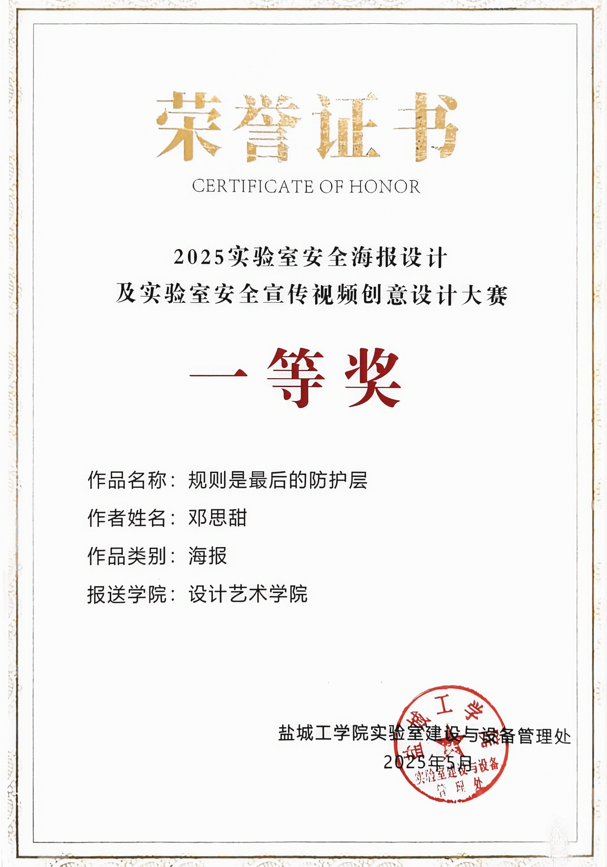 为进一步增强我校师生实验室安全意识,营造浓厚的实验室安全文化氛围,根据2025年实验室安全月系列活动安排,由实验室建设与设备管理处主办、设计艺术学院承办的实验室安全海报设计、实验室安全宣传视频创意设计大赛圆满落下帷幕。