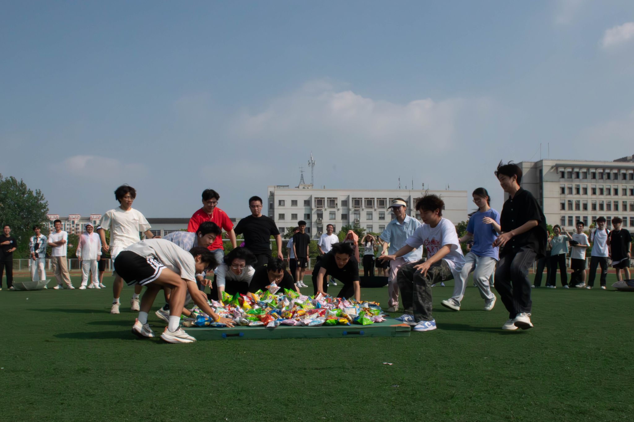 活动现场,同学们积极参与,热情高涨。本次活动精心策划并设置了撕名牌、抢零食大战、筷子夹球等近二十个精彩项目。“撕名牌”环节中参与者们个个斗志昂扬,如离弦之箭般冲向对手,目光敏锐、动作敏捷,以迅雷不及掩耳之势撕下对手的姓名牌,现场气氛紧张刺激,欢呼声和喝彩声此起彼伏;“抢零食大战”的现场更是热闹非凡,学院拉拉队的加油声震耳欲聋,选手们为了学院的荣誉拼尽全力,在“抢夺”中展现出强烈的集体荣誉感和顽强的拼搏精神;“筷子夹球”摊位前,参与者们全神贯注,眼神紧紧锁定在小小的球上,双手小心翼翼地操控着筷子,引来周围人的阵阵喝彩。大家在专注的过程中,深刻体会到耐心与细致的重要性;“大富翁”游戏区域,同学们化身为精明的商人,在虚拟的财富冒险中,不断做出决策、制定策略,不仅锻炼了自己的决策能力和策略思维,更深刻体会机遇与挑战并存的乐趣;投壶这一传统游戏区域也吸引了众多师生的目光,大家纷纷摩拳擦掌、跃跃欲试,一投一掷间感受着古人的雅趣与智慧。每个游戏摊位前都围满了热情的参与者,大家在游戏中释放压力,增进友谊,享受露营派对的快乐。