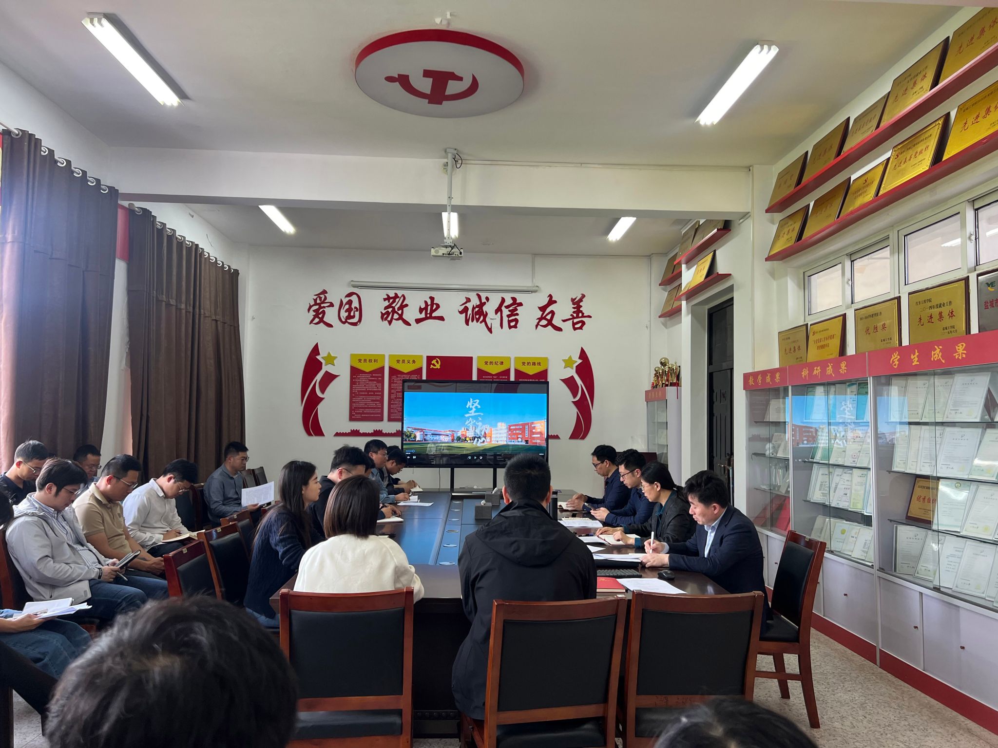 5月9日上午,在大学科技园E1楼二楼会议室,盐龙湖校区管委会党总支组织开展“510”思廉月警示教育活动,党总支副书记、副主任(主持工作)赵云峰主持,全体教职工参加。