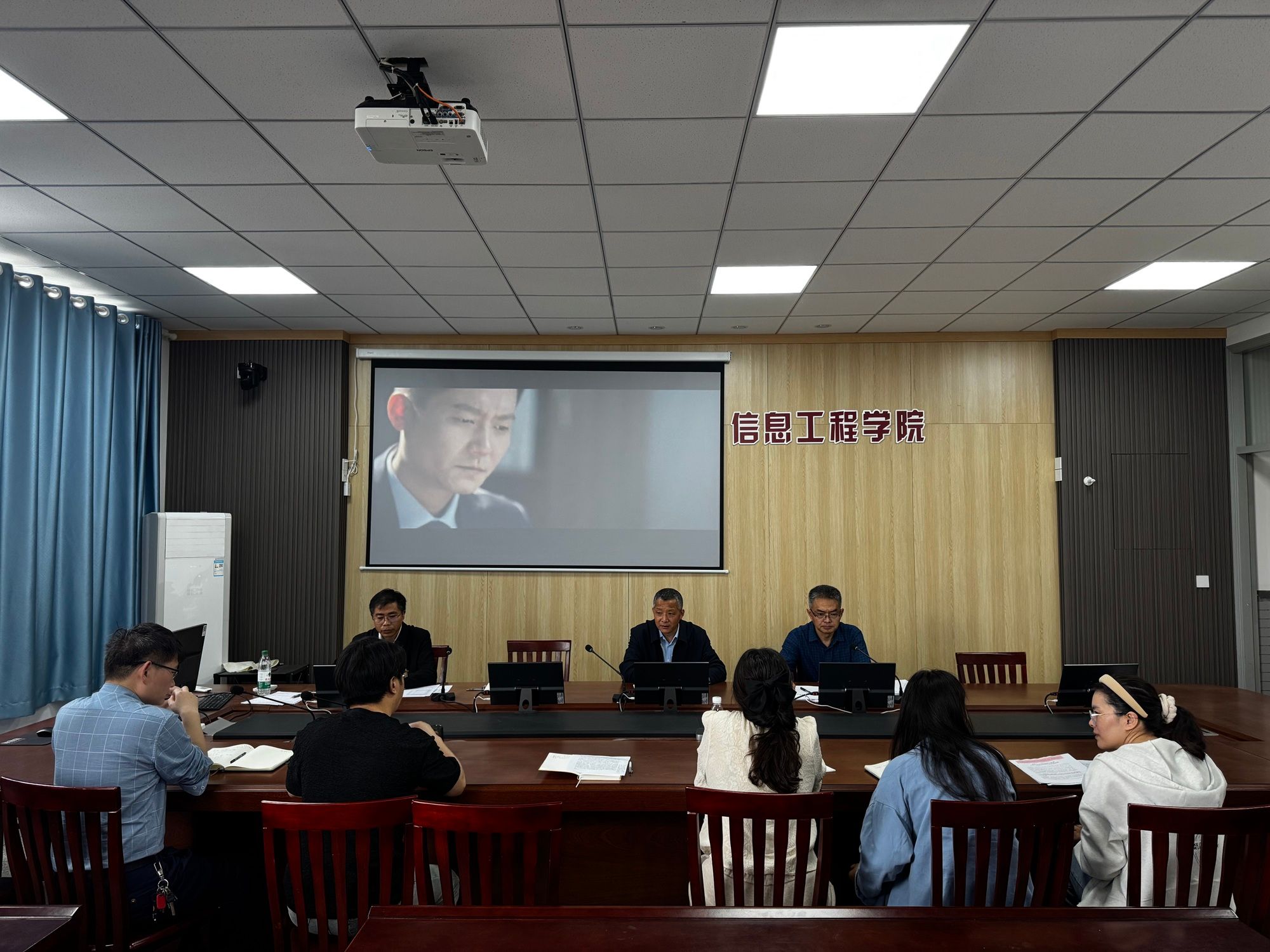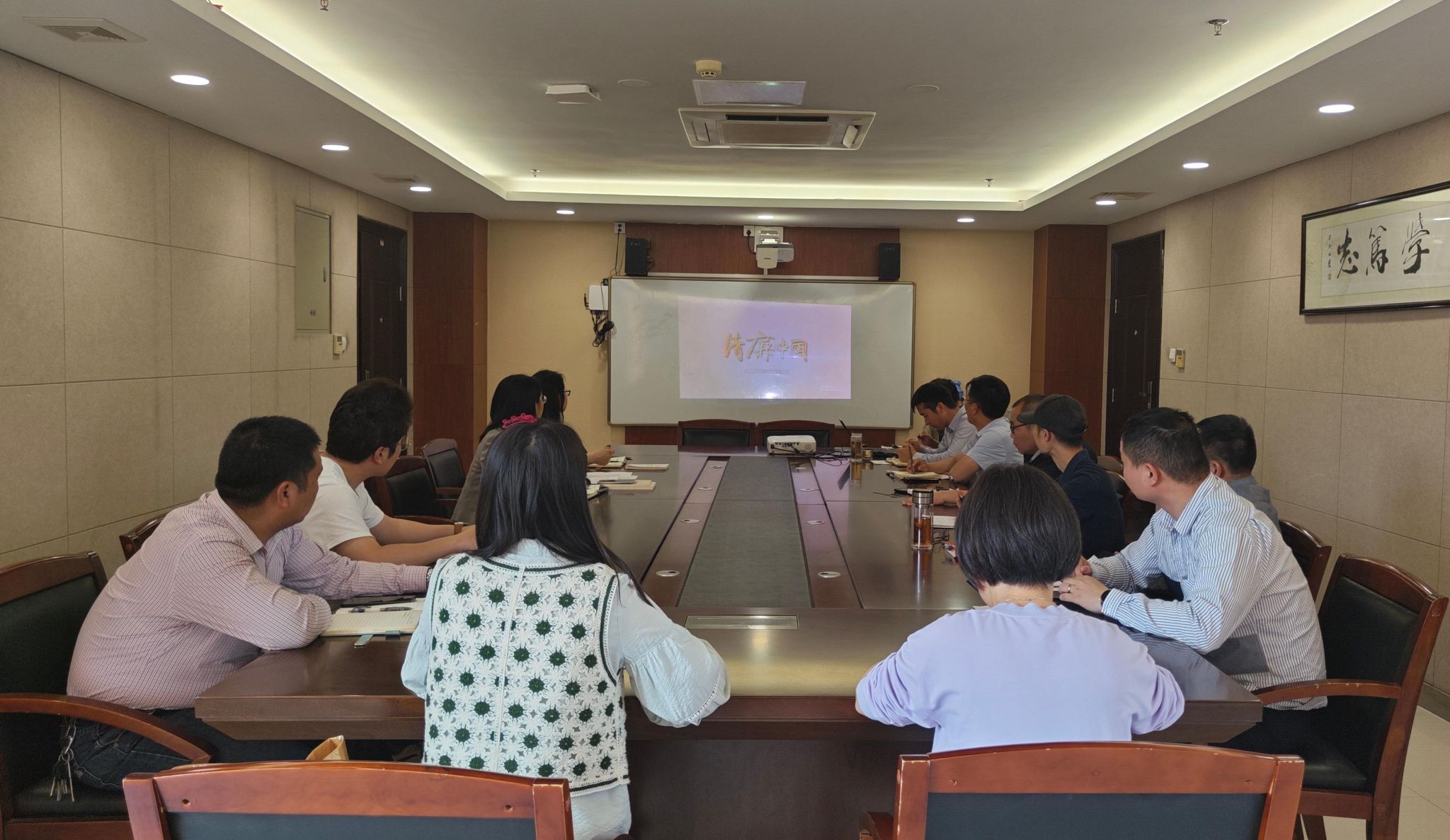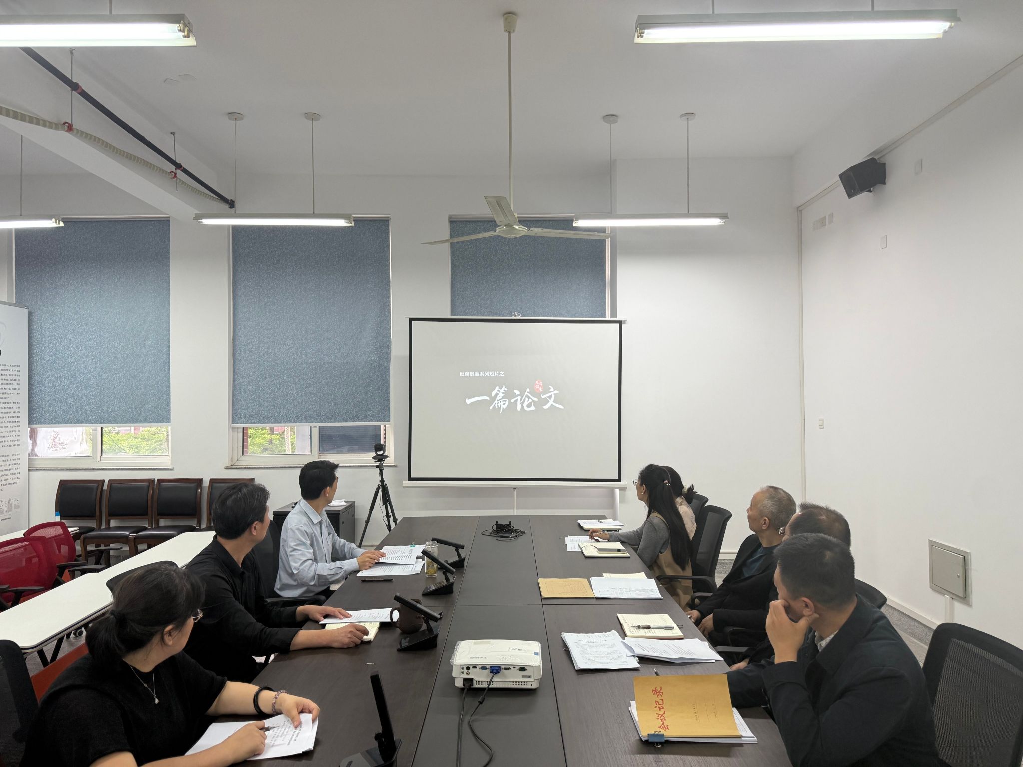 与会人员集体观看了《购物卡》《一篇论文》《家声》等廉政教育视频。