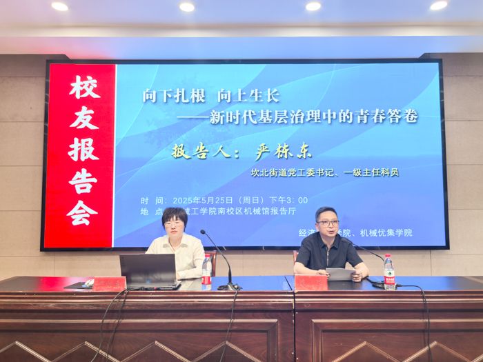 5月25日下午,我校工商管理专业2007届优秀校友、滨海县坎北街道党工委书记严栋东应邀重返母校,在机械馆报告厅为师生作题为《向下扎根、向上生长——新时代基层治理中的青春答卷》的专题报告。机械优集学院副院长(主持工作)宦海祥、党委副书记阎小民出席,经济管理学院党委书记陈阳主持。机械优集学院、经济管理学院学生干部代表等300余人参加。