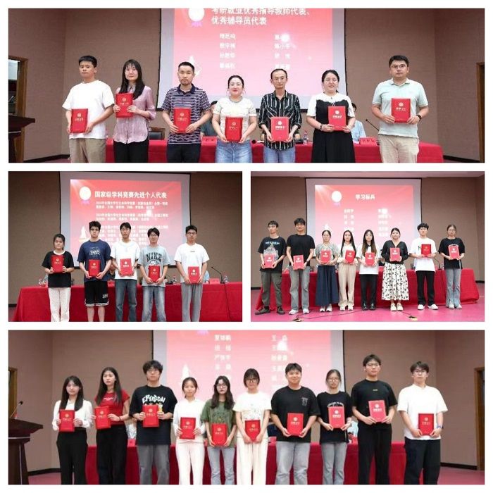 张丽宣读了《关于表彰2024~2025学年考研就业“优秀指导教师”和“优秀辅导员”的决定》及《关于表彰2024年度国家级学科竞赛先进个人的决定》,孙新华宣读了《关于表彰2024~2025学年“学习标兵”和“优秀学生干部”的决定》。会议为受表彰的优秀教师和学生代表颁发了荣誉证书。