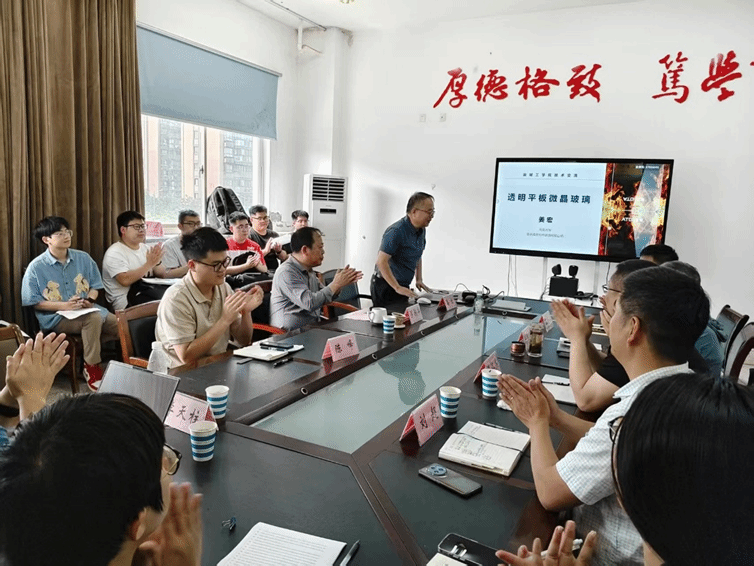 姜宏教授以《透明平板微晶玻璃》为题,系统阐述了材料的研究背景、核心性能优势及其在高端建筑幕墙、显示盖板、特种防护等领域的应用前景,重点探讨了微晶相与玻璃基体界面结构的设计、调控对材料综合性能的关键影响,以及微晶化过程中界面形成与演化的理论模型、关键实验表征技术等当前研究热点与核心科学问题。在交流环节中,姜宏教授就透明平板微晶玻璃的成分精确设计、先进制备工艺优化、界面结构的精准多维表征技术、以及面向实际应用的性能提升策略等核心议题与师生展开了热烈的讨论。