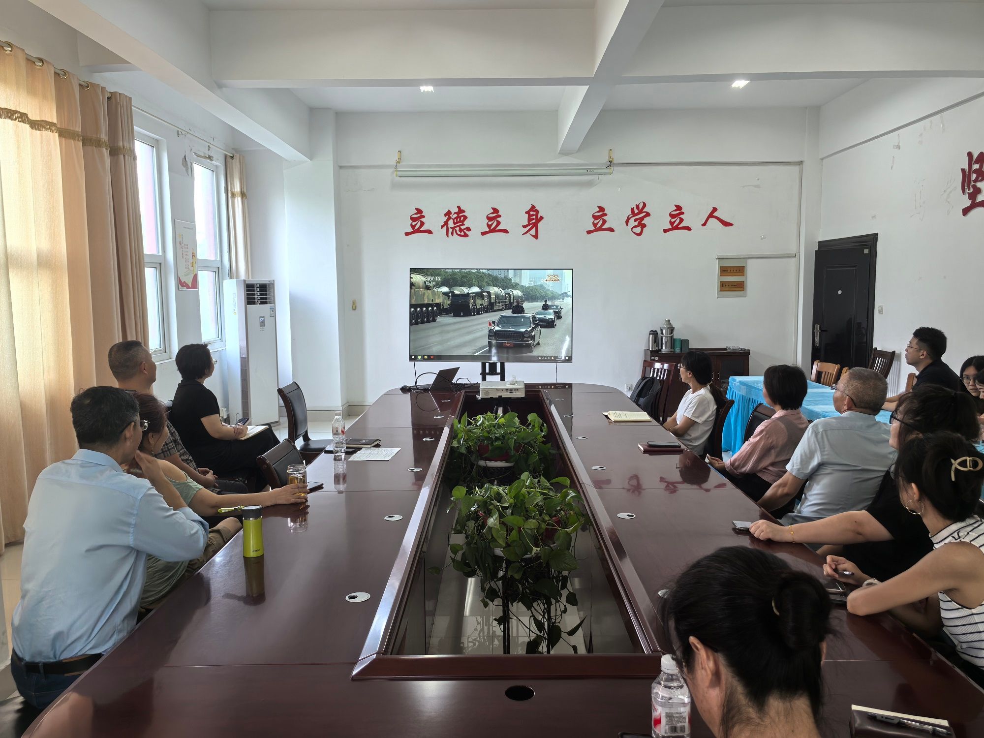 全体人员认真聆听习近平总书记重要讲话,对抗日战争的历史意义有了更深刻的理解。大家全神贯注观看阅兵盛况,为阅兵展现出的国家强大和军队威武深感自豪,在场人员不时低声交流体会,一致认为集体观看的形式强化了纪念活动的庄严氛围和教育效果,比个人观看更能激发内心的认同感与使命感。
