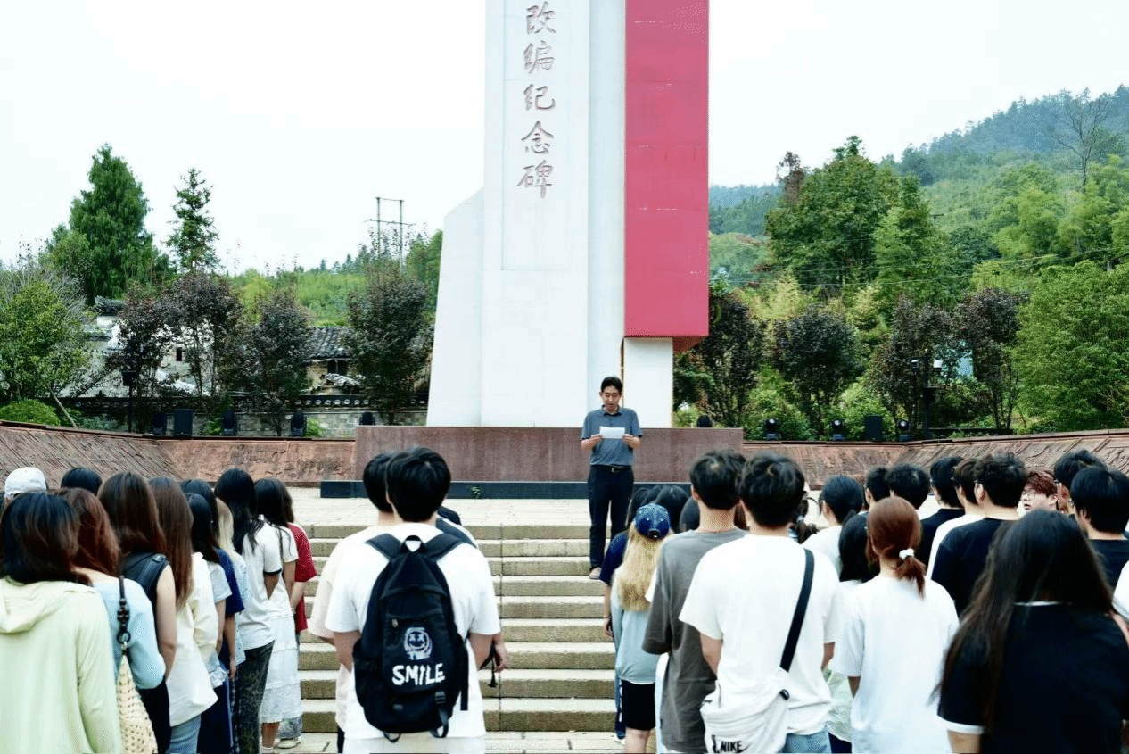 在新四军瑶里改编纪念碑下,张军结合革命历史史实,现场指导青年学子开展思政实践活动。他表示,先辈们为理想浴血奋斗的感人场景历历在目、对青年的谆谆教诲犹在耳畔。他希望在场师生能把今天听到的红色故事、感受到的革命精神,融入未来的学习与创作中,用画笔传递正能量,用行动践行青年使命。他呼吁,当代大学生应当以自己的实际行动,做有理想、敢担当、能吃苦、肯奋斗的好青年,以脚步丈量祖国大地,以内心感受时代呼声,从中汲取力量、坚定信念,立志为实现中华民族的伟大复兴而努力奋斗。