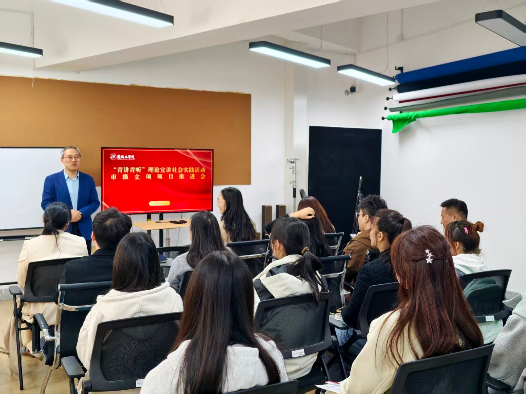 10月29日下午,盐城工学院网络思政中心在希望大道校区仁和楼融媒体中心会议室,专题召开“青讲青听”理论宣讲社会实践活动市级立项项目推进会。党委常委、宣传部部长奚新国出席会议并讲话,各市级立项项目指导教师及学生团队负责人参会,共同为项目高质量推进凝聚共识、明确路径。