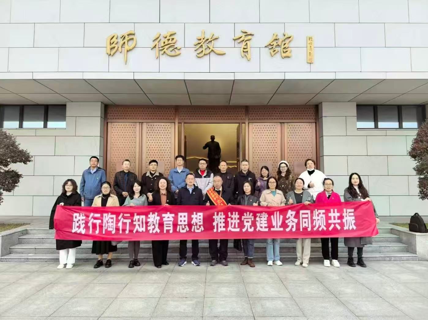 为深入践行教育家精神,加强师德师风建设,探索党建引领高质量发展有效路径,11月8日下午,人文学院党总支组织教师赴南京晓庄学院行知园开展“践行陶行知教育思想 推进党建业务同频共振”师德师风主题教育。金陵科技学院人文学院党委书记吴轶军、江苏卫生健康职业学院公共基础医学基础体育部党总支书记王家兵应邀参加指导交流。