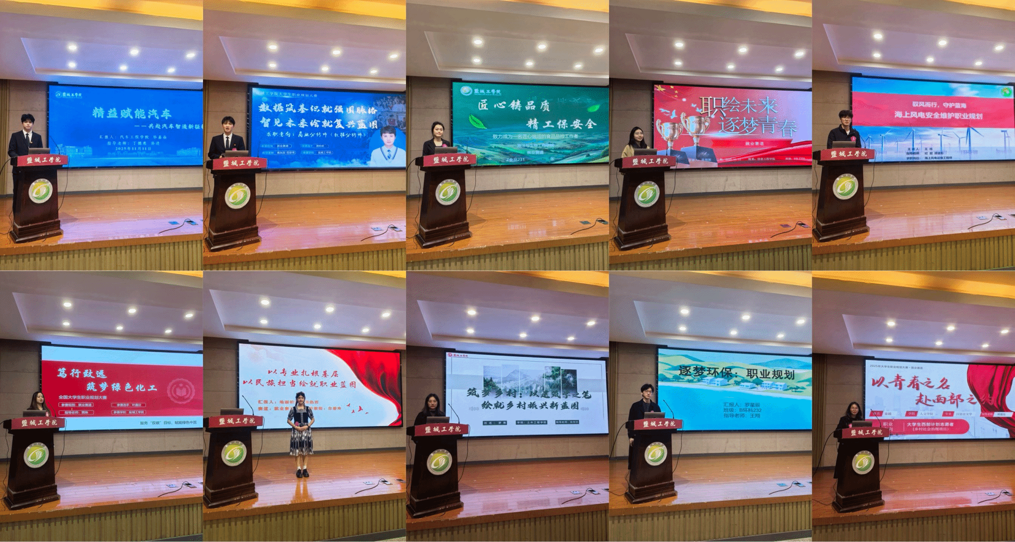 本次大赛以“筑梦青春志在四方,规划启航职引未来”为主题,吸引了全校学生的广泛关注与积极参与。大赛自启动以来,共收到参赛作品71份,其中成长赛道50份、就业赛道21份。经选拔,17组成长赛道选手和10组就业赛道选手脱颖而出,晋级决赛。决赛现场,选手们通过个人展示、现场答辩等环节,全面展现盐工学子清晰的职业目标、扎实的专业素养和积极的求职态度。