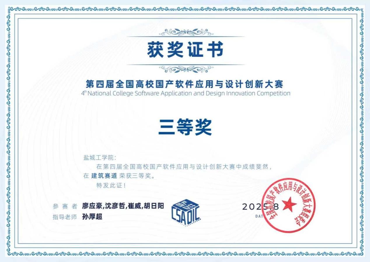 土木学院在第四届全国高校国产软件应用与设计创新大赛获佳绩