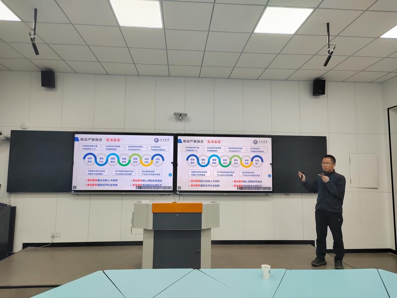 为切实提升我校教师教学创新能力,助力参赛教师在第六届江苏省教师教学创新大赛中取得优异成绩,12月12日下午,教务处(教师发展中心)在博学楼D314智慧教室组织开展教师教学创新大赛专场培训。本次培训特邀第五届全国高校教师教学创新大赛一等奖获得者、江苏大学材料科学与工程学院罗锐教授担任主讲嘉宾,教务处副处长孔剑锋主持活动。