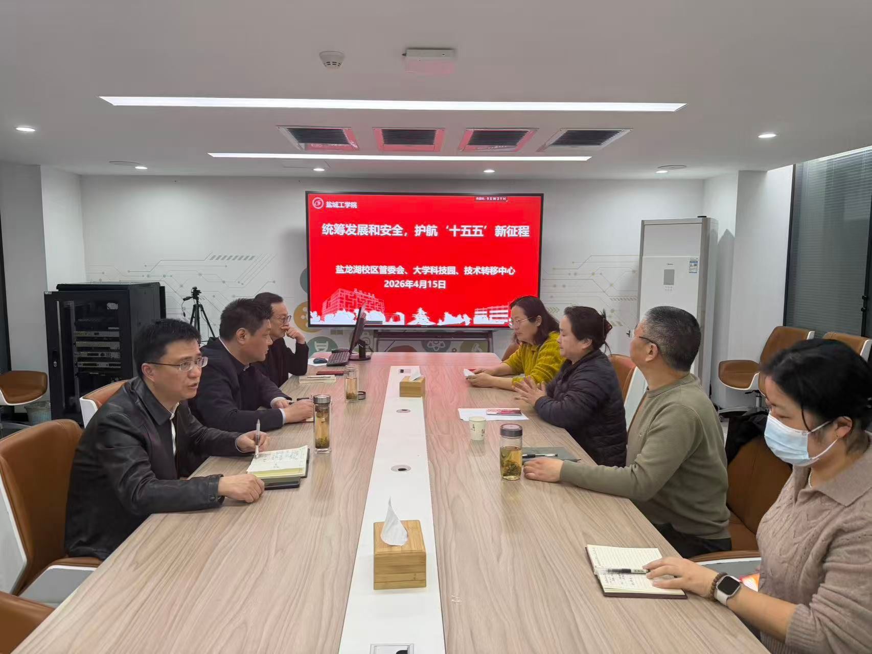4月15日下午,在西伏河产学研协同创新中心215会议室,盐龙湖校区管委会、大学科技园、技术转移中心组织开展2026年全民国家安全教育日普法宣传活动。会议由副主任、党总支副书记(主持工作)赵云峰主持,全体教职工参加。