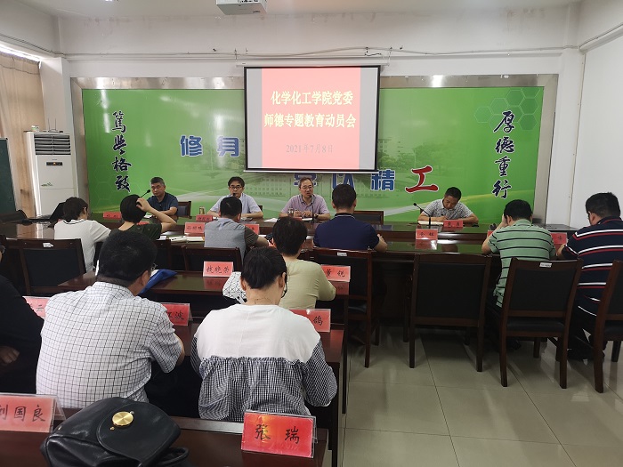 7月8日上午,化学化工学院党委在北校区学院会议室召开师德专题教育动员会。学院书记谢毅敏主持,学院全体教师参加。