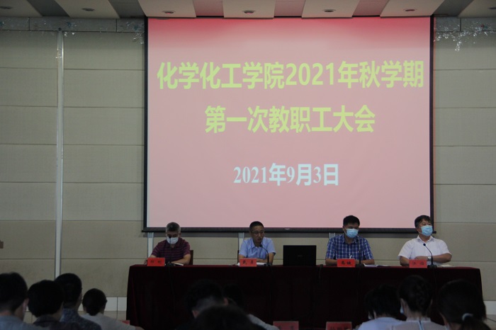 9月3日下午,化学化工学院在北校区化工楼报告厅召开秋学期教职工大会暨重点工作推进会。学院副院长祁刚主持,全体教职工参加。