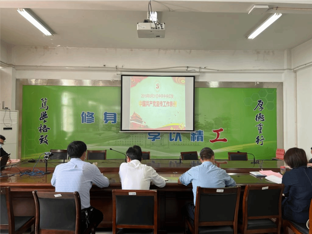 副院长祁刚领学《中国共产党宣传工作条例》。他指出,《中国共产党宣传工作条例》为宣传工作提供了基本遵循,学院要贯彻学习,着力推动宣传思想工作开创新局面。他希望,学院各级党组织要充分利用“学习强国”等平台加强理论学习,全面提升思想认识,在比学赶超的浓厚氛围中提高政治站位,着力增强“四个意识”,不断坚定“四个自信”,坚决做到“两个维护”。他强调,对照《中国共产党宣传工作条例》“坚持正确政治方向,舆论导向,价值取向,把握好时度效,唱响主旋律,弘扬正能量”的要求,学院要加强正面宣传和舆论引导,着力强化学院网络阵地建设和网络传播平台的管理。