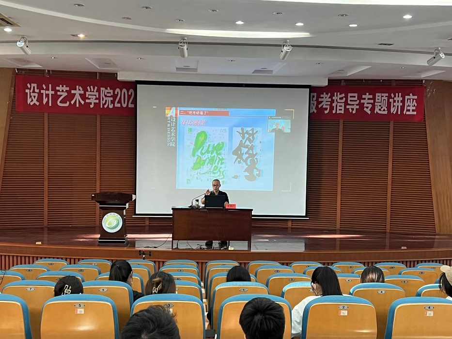 王文广作题为《高鸣彻九州,延颈望八荒——关于考研备考那些事》专题辅导讲座。他结合当下设计学科发展现状、近年学院考研报名及录取等情况,详细分析了今年考研的机遇与挑战,就如何复习公共课、专业课给出具体详尽的备考建议。他提醒大家要努力找准、用好“己之所好、校之所长、师之所精”,并根据自身实力慎重选择目标院校。