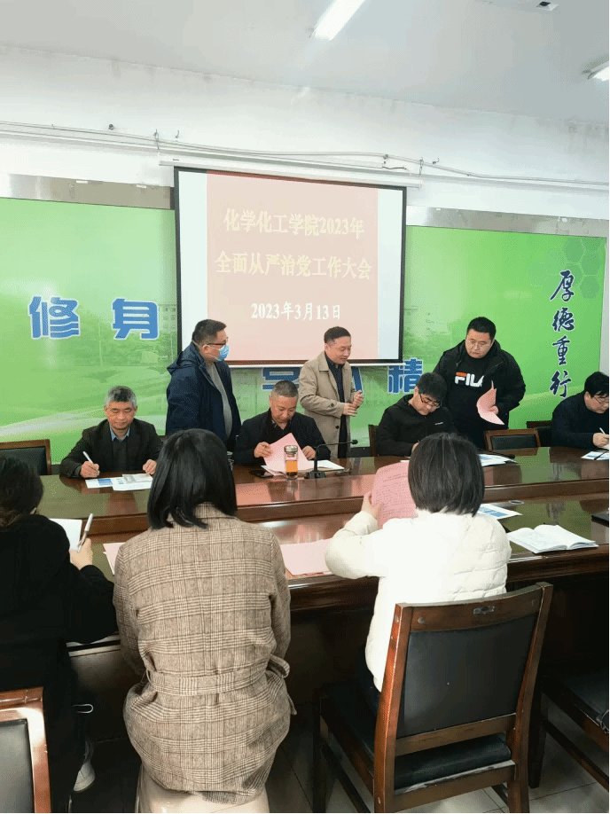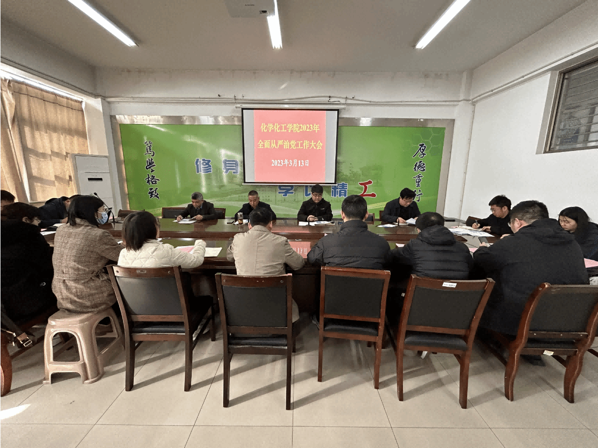 3月13日上午,化学化工学院在学院201会议室召开全面从严治党工作会议。学院党委副书记庞辉主持会议。学院全体科级以上干部、专业系(教研部、实验中心)主任、党支部书记参加。