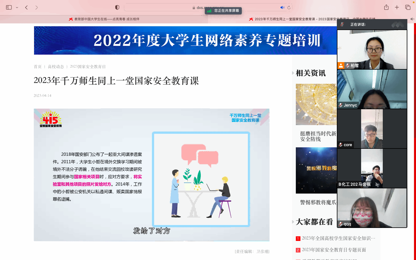 4月14日下午,学院组织全院师生通过中国大学生在线官网,观看以“千万师生同上一堂国家安全教育课”为主题的公开课。