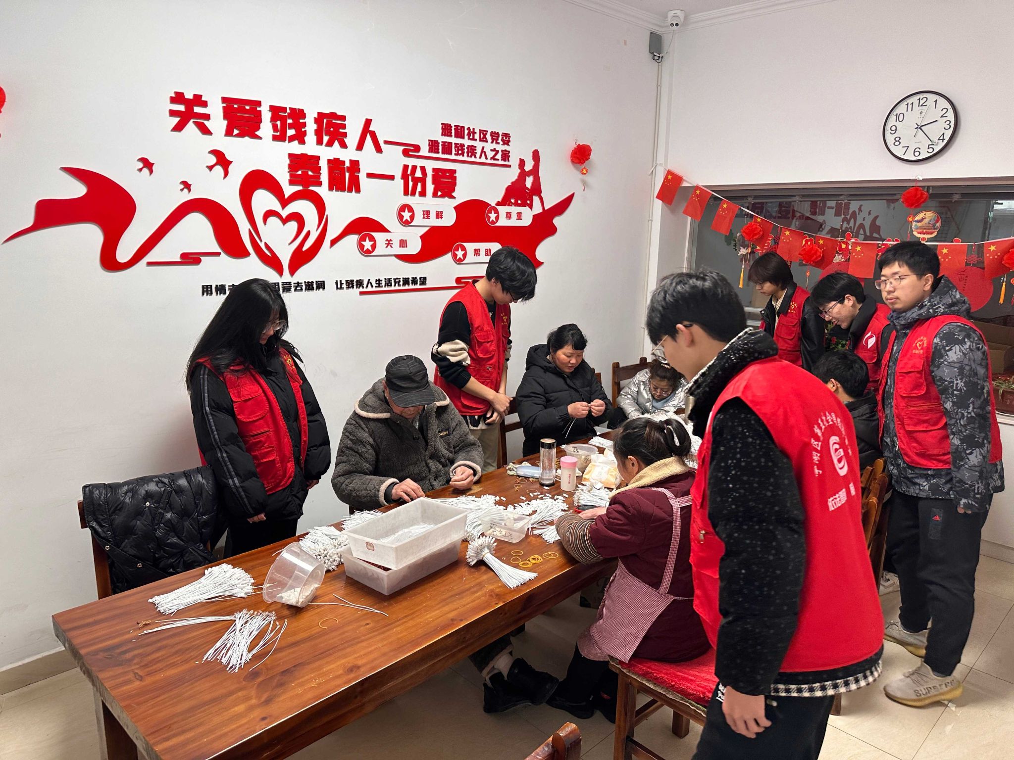 “雅和残疾人之家”里,志愿者与他们一起做手工,了解他们的困难和需求,鼓励他们树立信心,积极勇敢地面对生活,整个房间充满温暖和关爱。此外,志愿者们还对“雅和残疾人之家”周边环境卫生进行了集中清理,为“雅和残疾人之家”建设贡献了自己的一份力量。