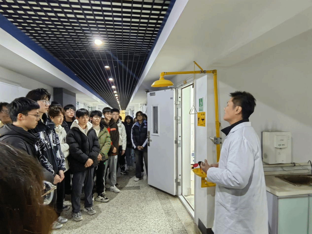活动中,同学们使用灭火器进行灭火模拟操作,并以班级为单位,从安全通道模拟实验室突发大火、烟雾弥漫事件进行消防逃生演练。
