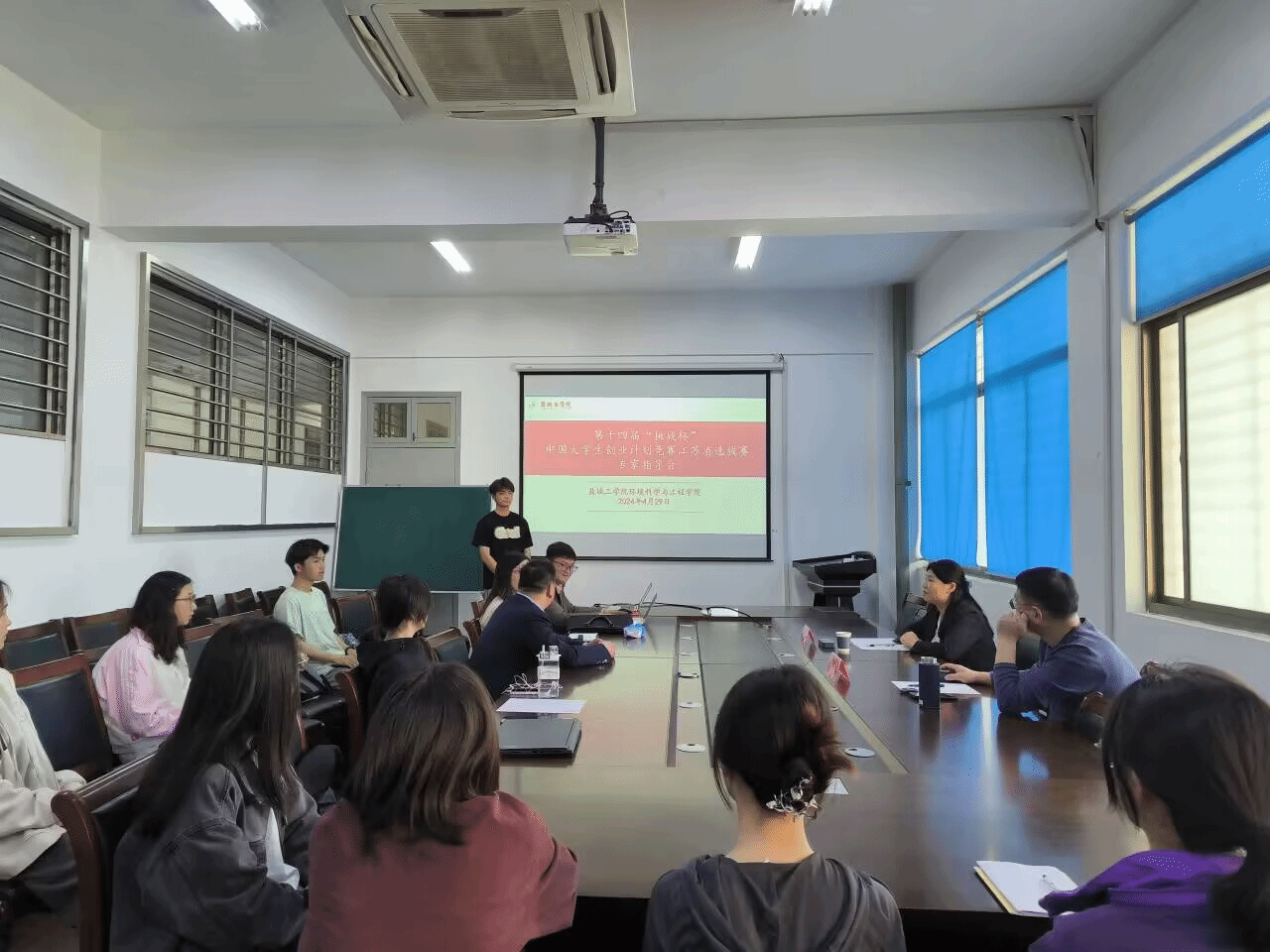 为更好地推动环境学院“挑战杯”赛事备赛工作,4月29日下午,环境学院在学院会议室召开第十四届“挑战杯”大学生创业计划竞赛专家指导会,邀请经管学院教授杨军、海生学院教授聂庆对环境学院“挑战杯”项目“湿地净地—新型修复药剂助力污染地下水再换新生”进行指导。会议由环境学院副院长杨百忍主持,项目指导老师陈勃、杨亚冬及主要学生负责人朱昊伟等十余名同学参会。