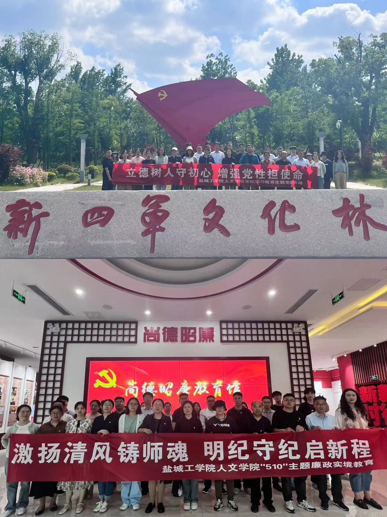 5月22日下午,人文学院赴盐城市委党校及盐城市党风廉政教育中心尚德昭廉教育馆开展“立德树人守初心 增强党性担使命”党纪学习教育主题党日活动暨“激扬清风铸师魂 明纪守纪启新程”“510”思廉月廉政实境教育活动。学院党政班子及师生党员代表等40余人参加。